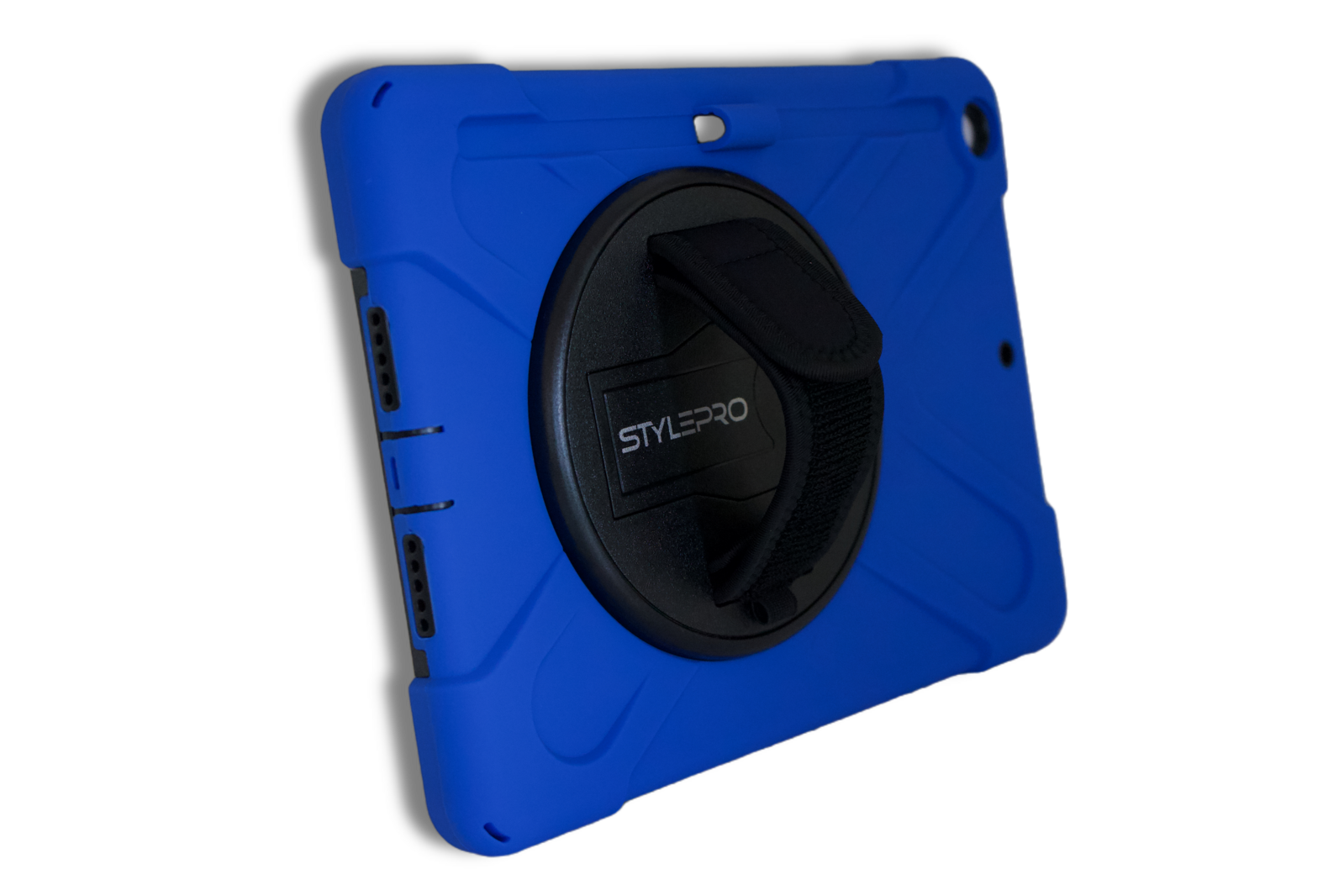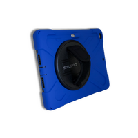 The case stand and strap can rotate 360° allowing you to hold the iPad in any direction. The case is made from shock absorbing layers and all ports and camera are accessible.