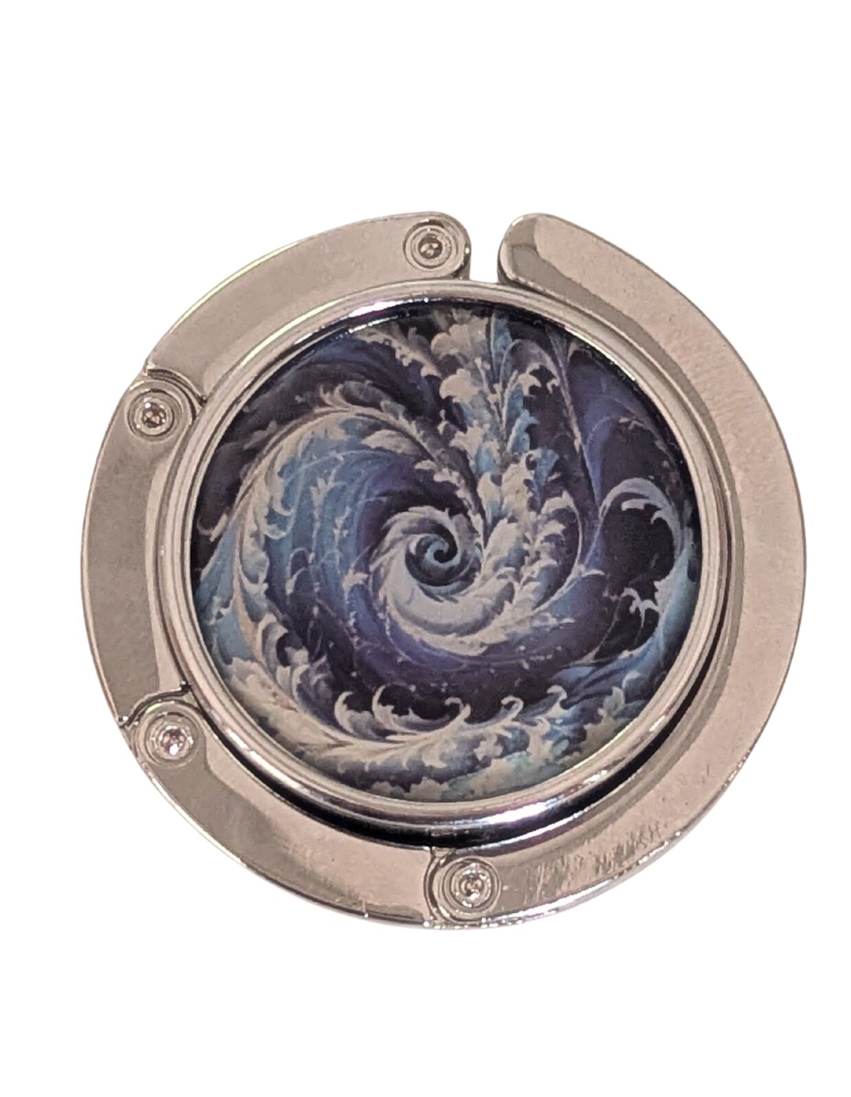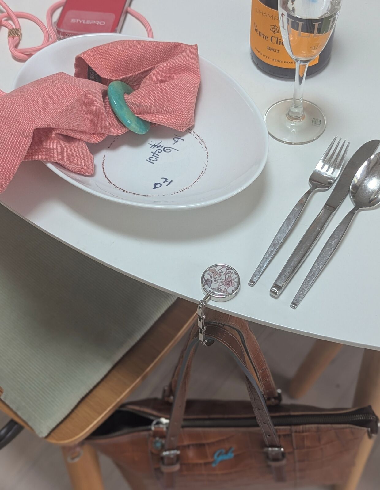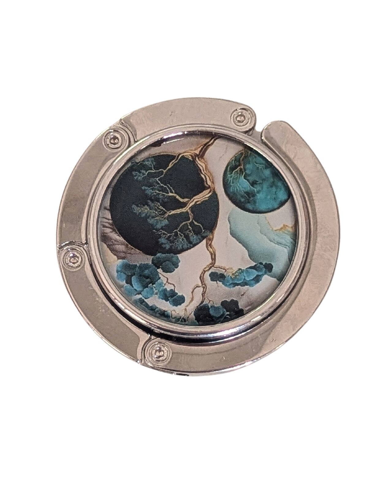 Its foldable, compact design fits easily into any purse, so you can take it anywhere. The anti-slip base and strong magnetic clip ensure a secure grip on the table, giving you total peace of mind. Designed to securely hold your bag on any table surface, from wood to stone to metal.