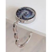 Its foldable, compact design fits easily into any purse, so you can take it anywhere. The anti-slip base and strong magnetic clip ensure a secure grip on the table, giving you total peace of mind. Designed to securely hold your bag on any table surface, from wood to stone to metal.