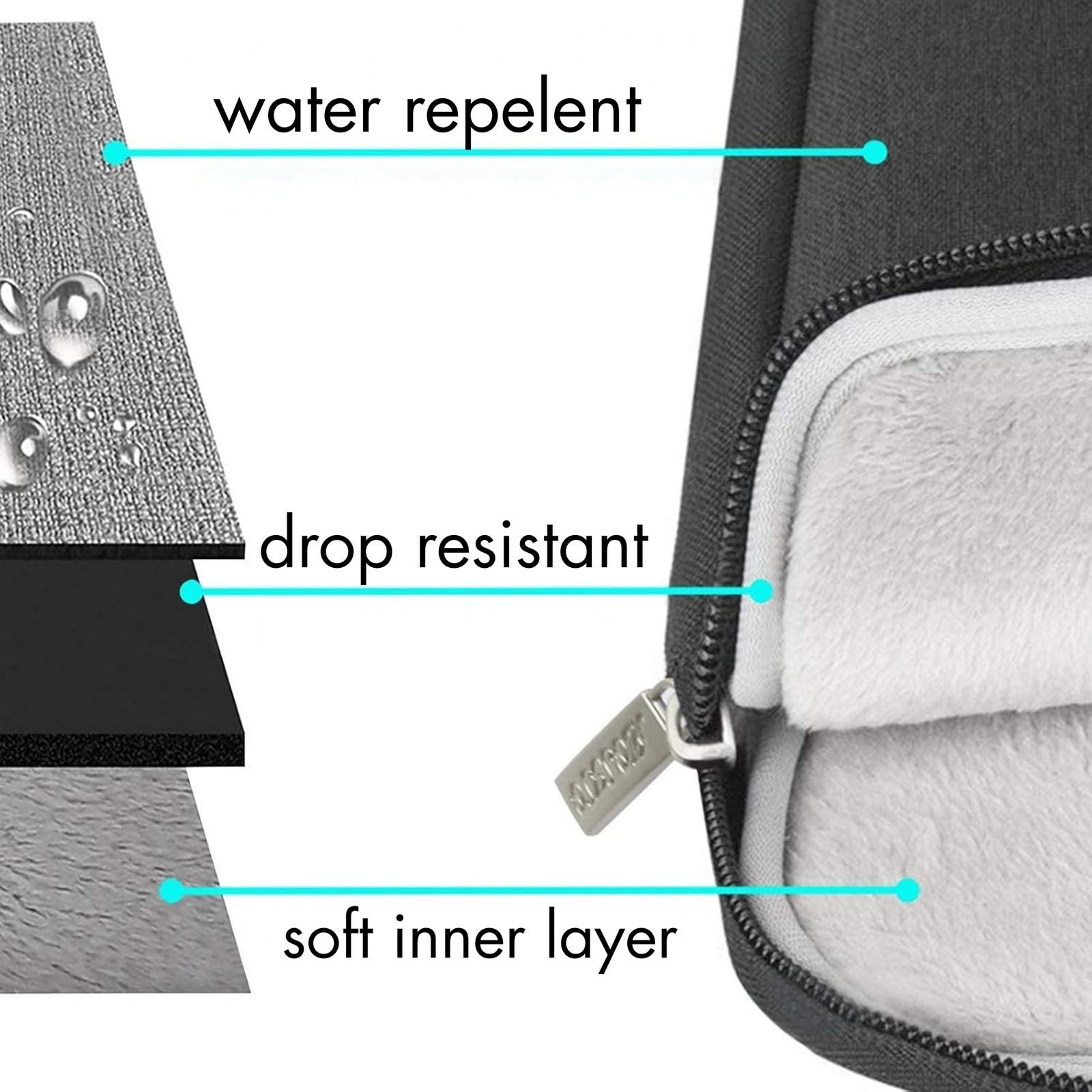 The water-repellent outer layer helps keep your device safe and dry, while the velvet-soft interior lining offers excellent shock absorption and protection from scratches.
